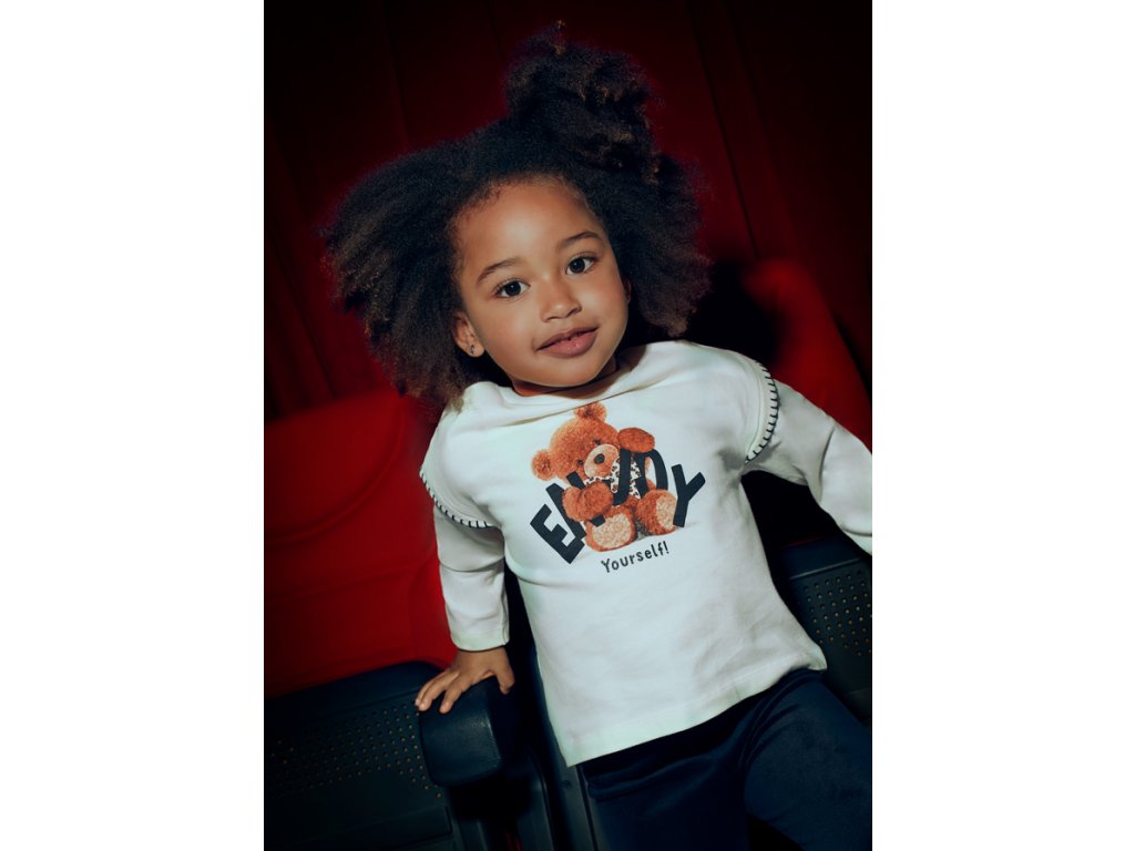 Roztomilé dívčí tričko Mayoral s dlouhým rukávem je vyrobené ze 100% bavlny, takže je měkké, pohodlné a šetrné k dětské pokožce. Přední stranu zdobí plyšový medvídek s mašlí se vzorem srdíček a nápisem Enjoy Yourself, což dodává tričku hravý a veselý vzhled. Díky univerzálnímu krémovému odstínu se snadno kombinuje s legínami, džíny nebo sukýnkou. Skvělá volba na každodenní nošení do školky, školy i na volný čas.