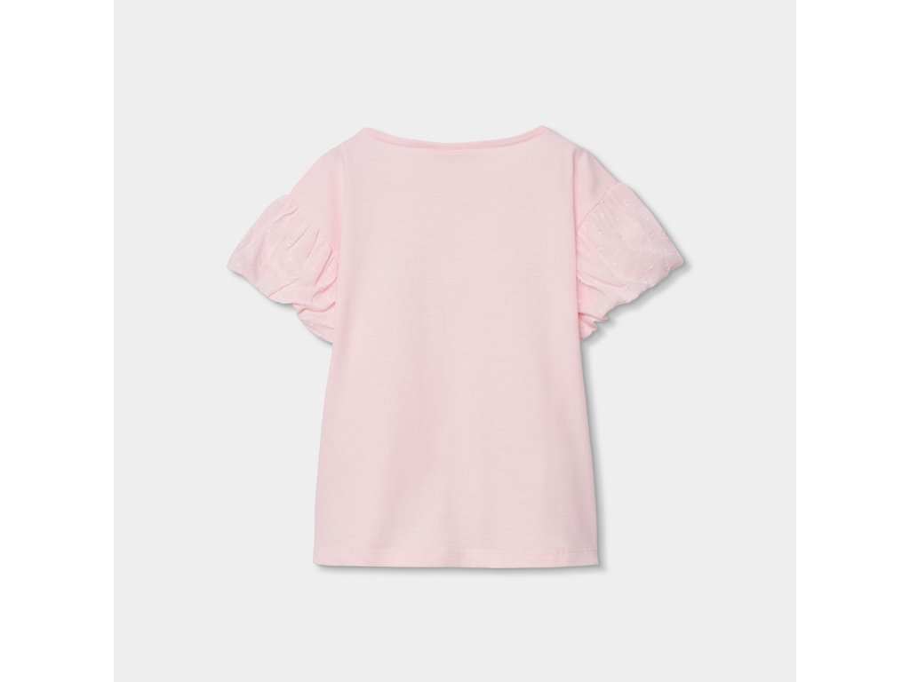 Krásné dívčí tričko Boboli v jemné růžové barvě zaujme svým originálním a hravým designem. Přední stranu zdobí výrazná 3D květinová aplikace, která dodává tričku jedinečný a stylový vzhled.