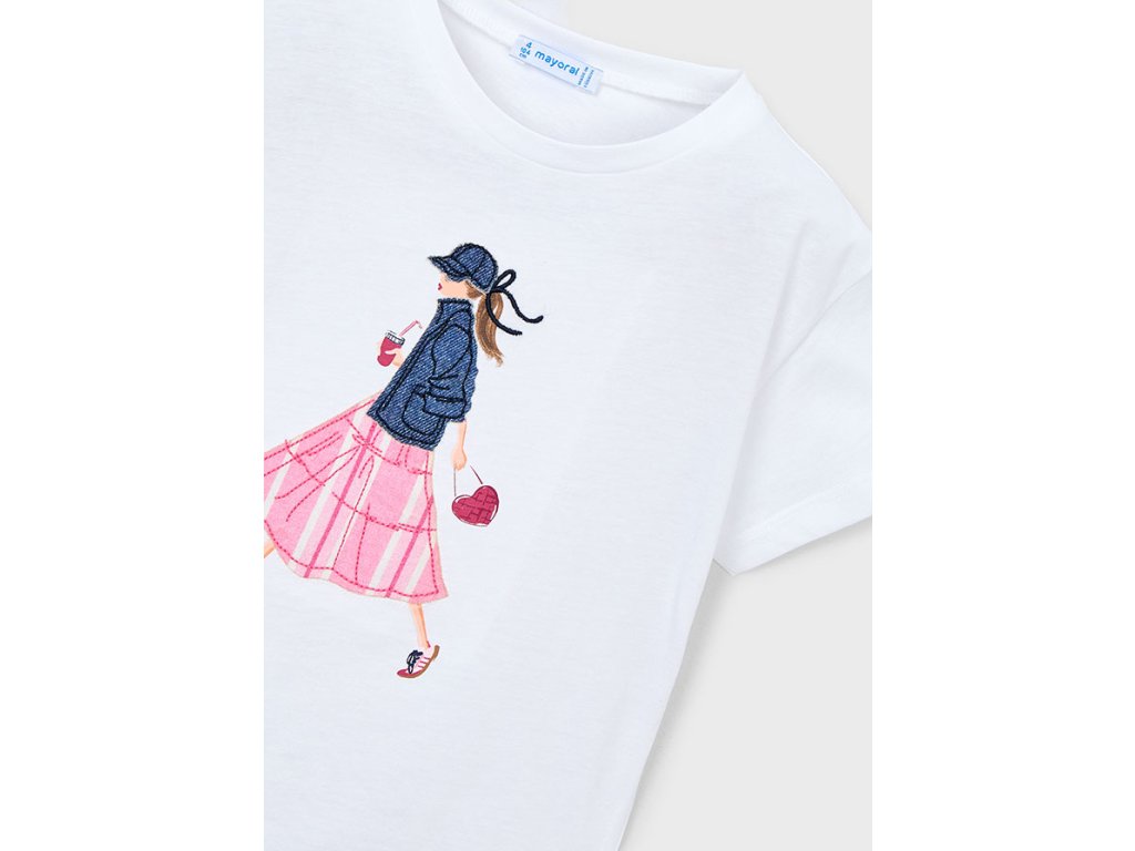 Stylové dívčí tričko od značky Mayoral zaujme jemnou výšivkou dívky se srdíčkem, která dodává modelu romantický a moderní vzhled. Tričko je vyrobené ze 100% kvalitní bavlny, díky čemuž je příjemné na nošení, prodyšné a šetrné k dětské pokožce.