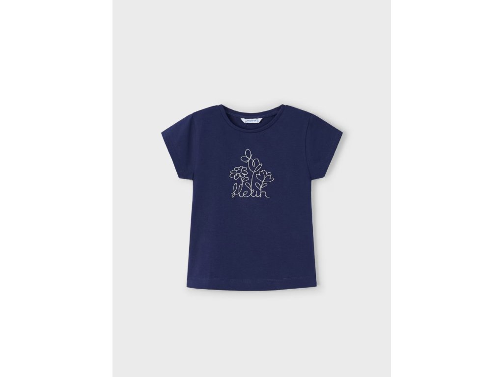 Modré tričko s krátkým rukávem Mayoral s květinami.