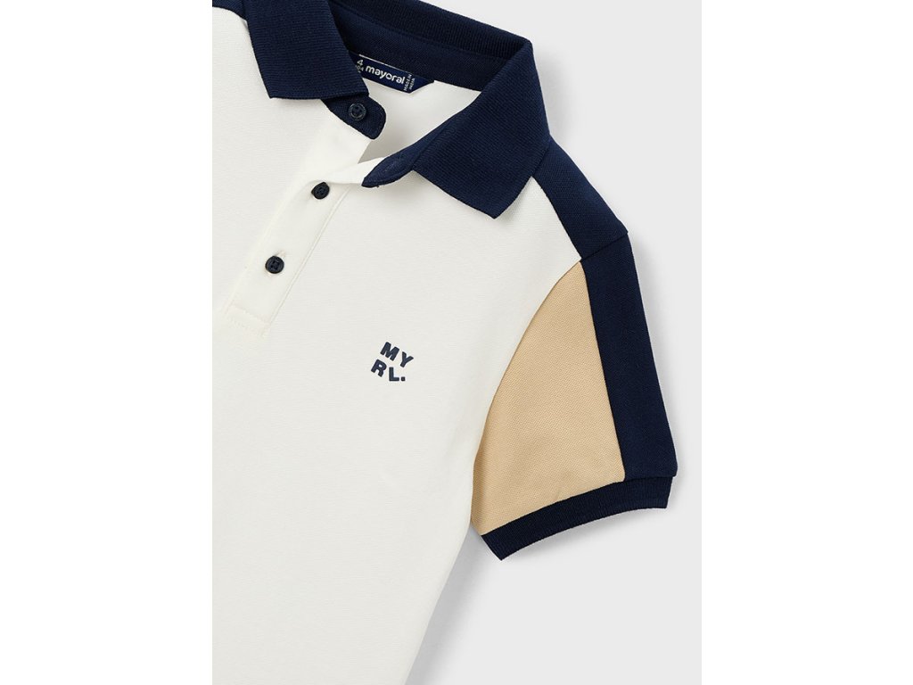 Stylové chlapecké polo tričko Mayoral, které kombinuje pohodlí a moderní vzhled. Elegantní límeček doplňuje sportovní design s kontrastními rukávy, díky čemuž tričko působí velmi svěže a stylově.