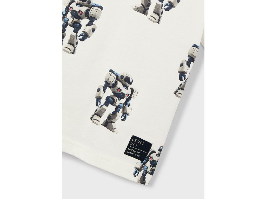 Stylové chlapecké tričko Mayoral s celoplošným potiskem robotů potěší všechny malé fanoušky techniky a her. Originální motiv s nápisem „Level Up“ dodává tričku moderní a hravý vzhled, který si děti zamilují na první pohled.