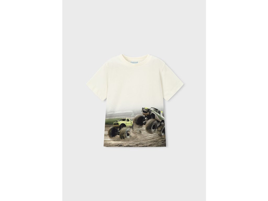 Stylové chlapecké tričko Mayoral s výrazným potiskem monster trucků nadchne každého malého milovníka aut a adrenalinu. Dynamický motiv závodních aut v akci dodává tričku moderní a hravý vzhled, který zaujme na první pohled.