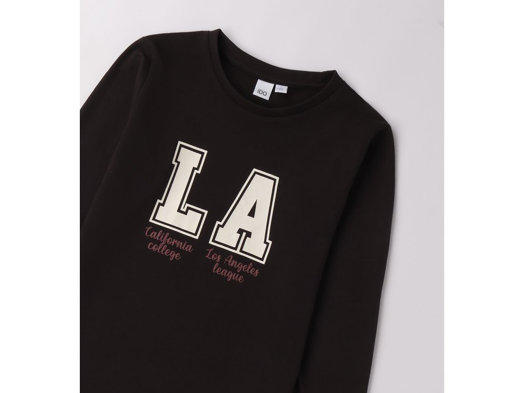 Stylové dětské tričko iDO s dlouhým rukávem v černé barvě, které zaujme výrazným univerzitním potiskem „LA – California College, Los Angeles League“. Vyrobeno ze 100% bavlny, zajišťuje maximální pohodlí a prodyšnost po celý den. Skvěle se hodí k džínům, mikině nebo bundě – ideální volba pro školu i volný čas.