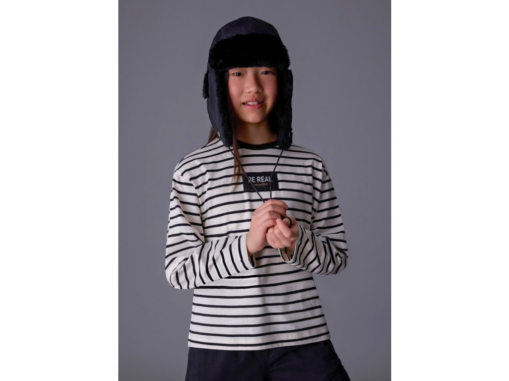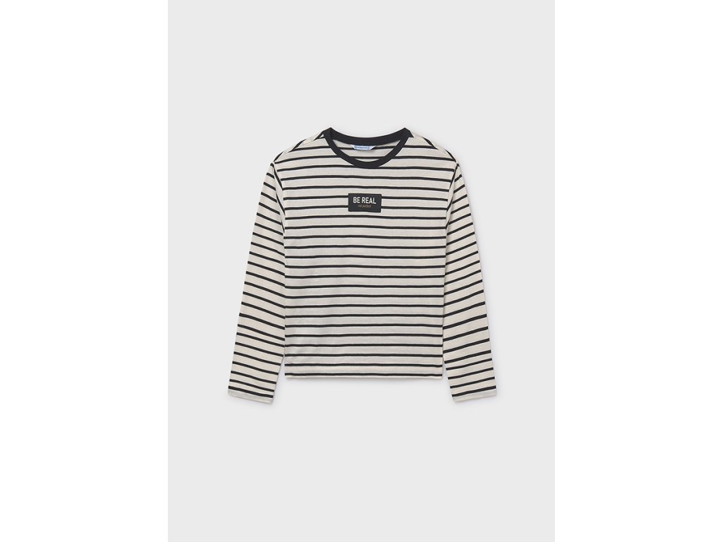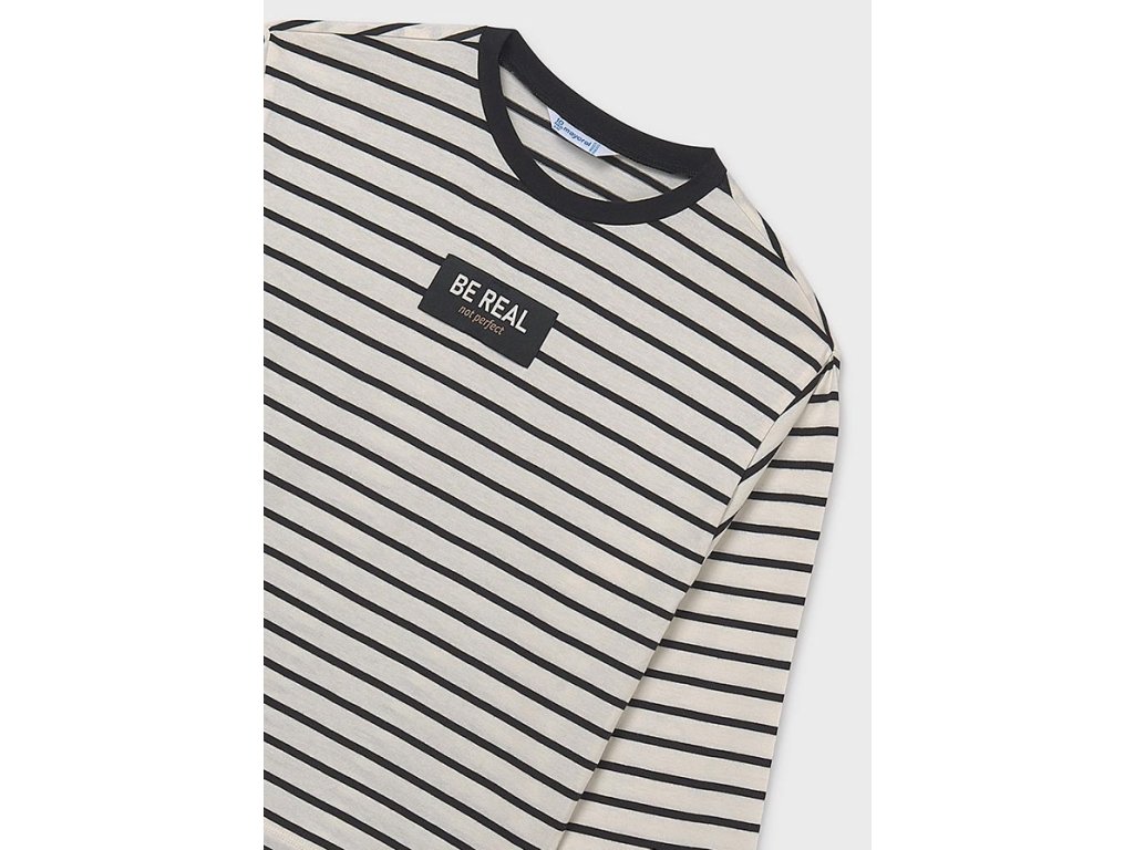 Pohodlné dívčí tričko Mayoral s dlouhým rukávem a moderním nápisem „BE REAL – not perfect“ potěší všechny malé slečny s vlastním stylem. Nadčasový pruhovaný vzor v kombinaci s kontrastním lemem u krku působí svěže a elegantně. Vyrobené ze 100% bavlny, která je příjemná na dotek a skvěle se nosí po celý den.