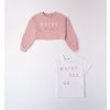 Dívčí set iDO – růžová cropped mikina a bílé tričko